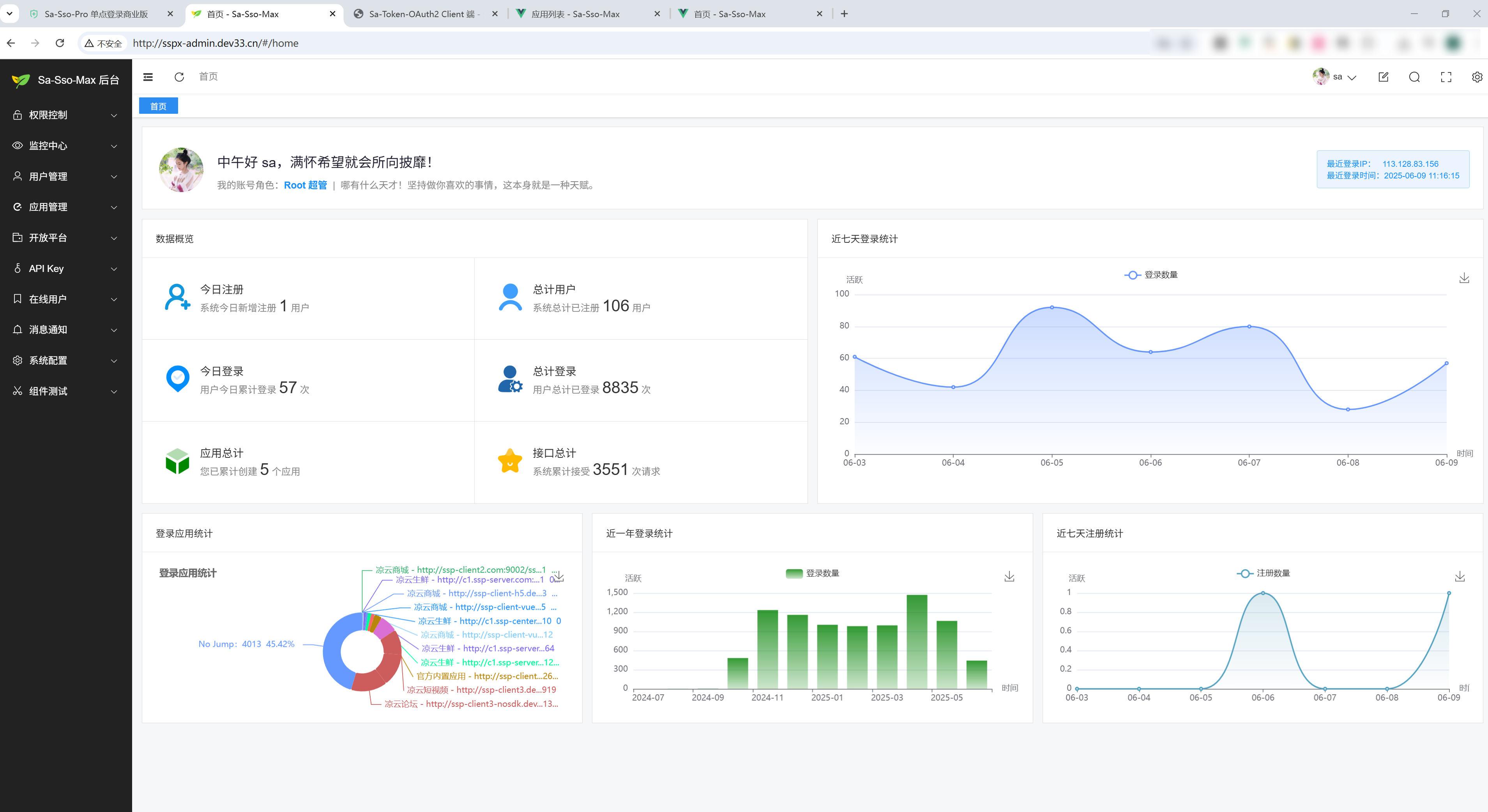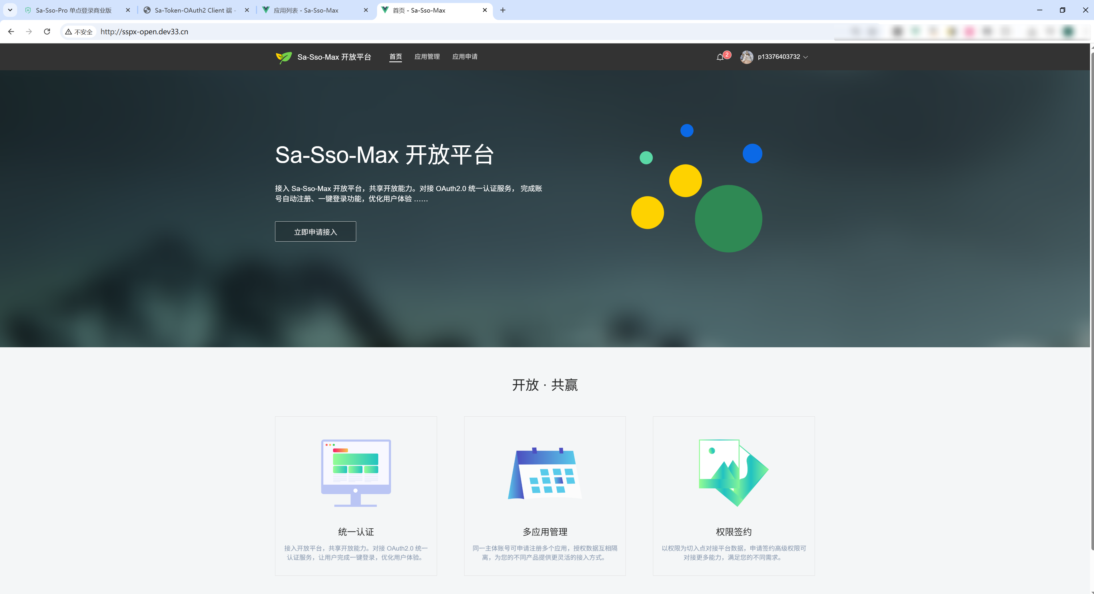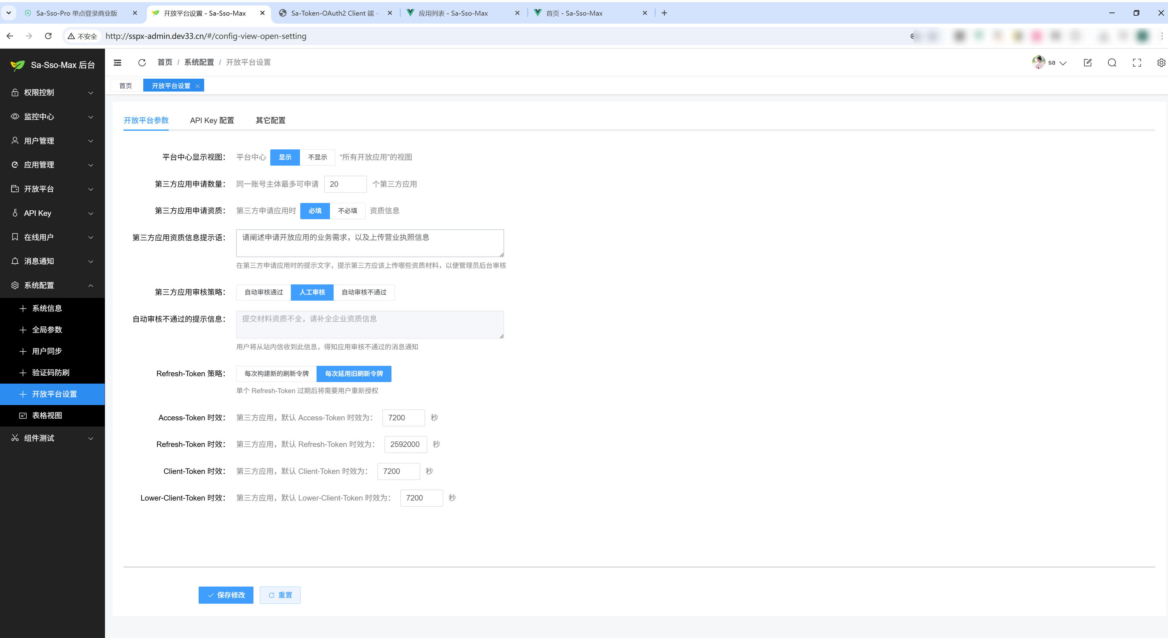 Sa-Sso-Max (简称Sa-Max) ,在 Sa-Pro 之上扩展完成,包含 Pro 版所有功能。并增加 API Key、OAuth2.0 统一认证能力, 并提供开放平台,供第三方公司申请应用对接平台能力。可大大缩短您的项目接入统一授权认证的开发周期。