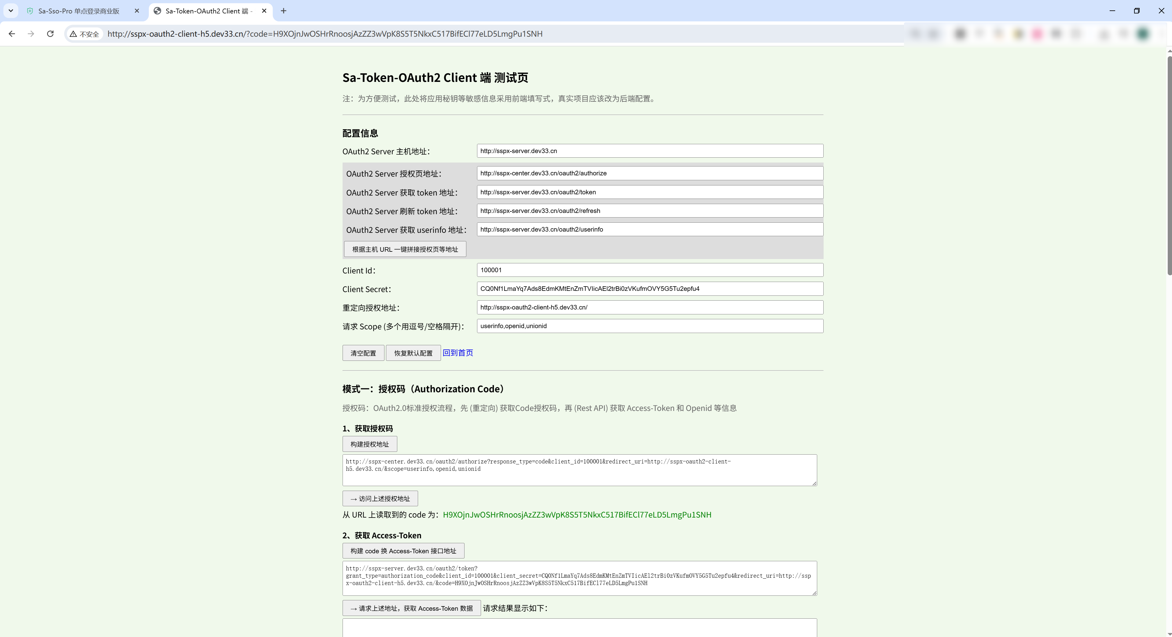 - ⚡ OAuth2 应用前端测试页:http://sspx-oauth2-client-h5.dev33.cn/